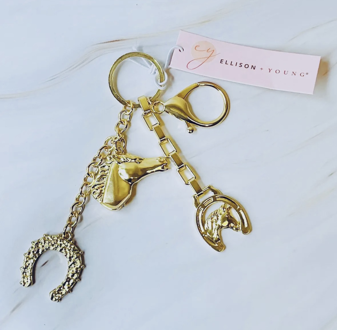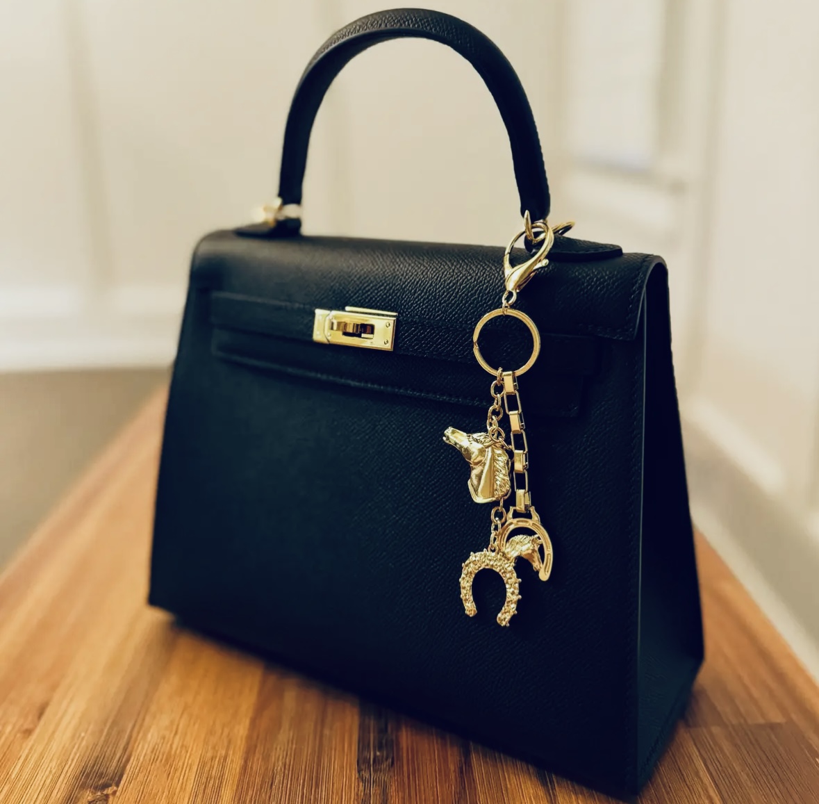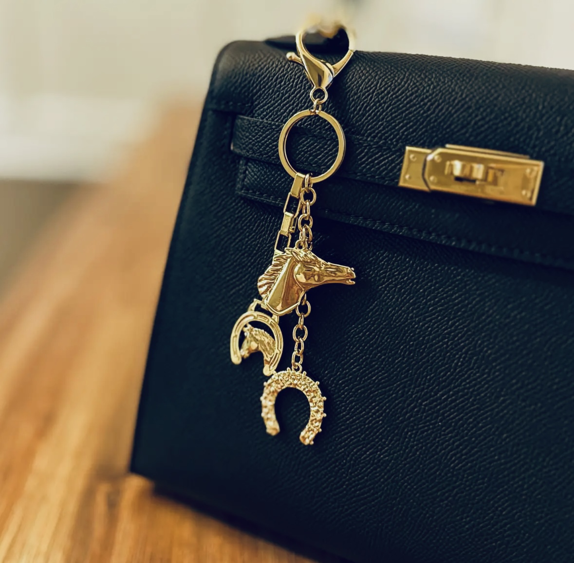 Every horse lover deserves a little charm that speaks to their passion. This Equestrian Symbols Bag Charm features timeless equestrian icons and adds a stylish touch to your favorite bag or tote. Each piece is crafted with 18k gold-plated metal and made to last. Perfect for gifting or treating yourself but hurry, stock is limited and these are selling fast among riders who love showing off their equestrian pride.