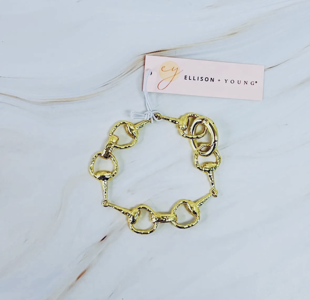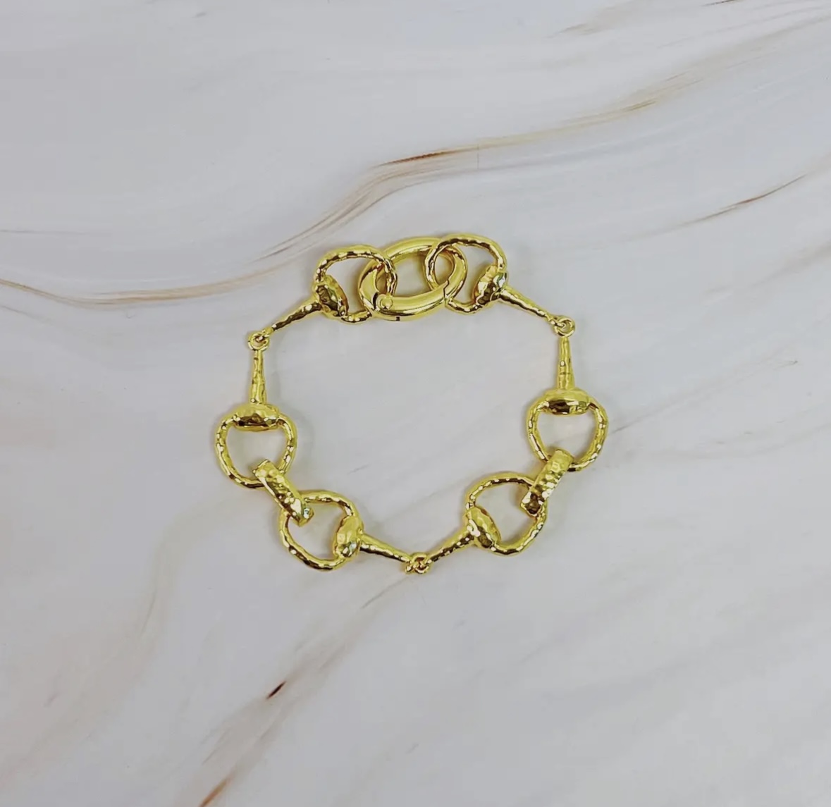 For the equestrian who appreciates fine details, this Linked Chain Horse Bit Bracelet offers a luxurious touch inspired by timeless riding gear. Made with 18k gold-plated brass and a comfortable extender fit, it’s perfect for layering or wearing solo. Loved by riders everywhere but hurry, only a few left before they sell out for the season.